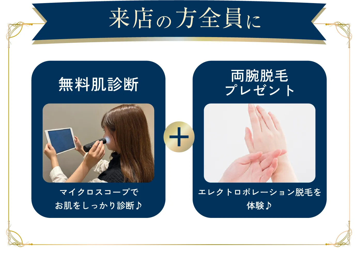 電気の力で、美容成分の浸透をサポートする最先端の美容技術。「浸透美容」とも言われており、イオンの20倍の浸透力を発揮!脱毛と同時に使用することで、うるおい肌を作りだします。