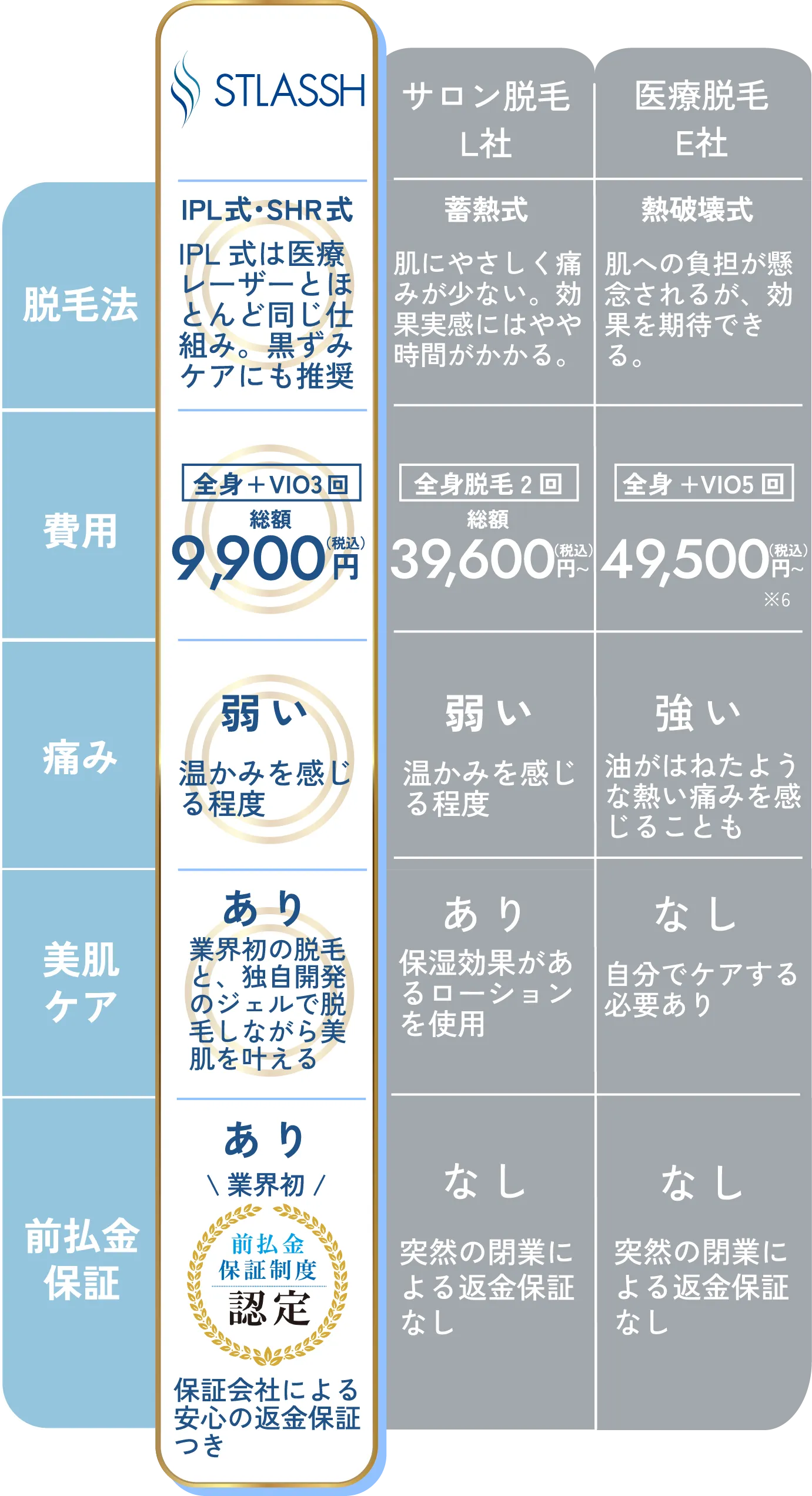 ※角質層まで ※1 計測期間:2016年1月~2025年07月 ※全国を対象に、店舗数50店舗以上の女性脱毛サロン4社(ストラッシュ/ラココ/エステティックTBC/ジェイエステティック)を調査。2025年10月16日時点で、Googleマップ上に表示される各サロン全店舗の口コミ数を合計し、弊社にて比較した結果に基づく。 ※10 2016年1月~2024年7月累計件数