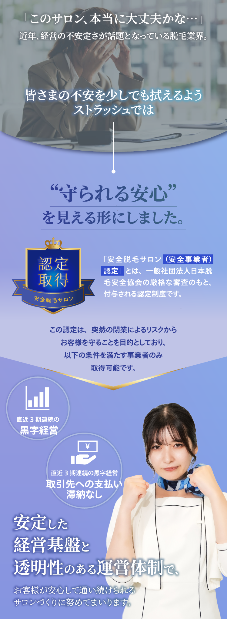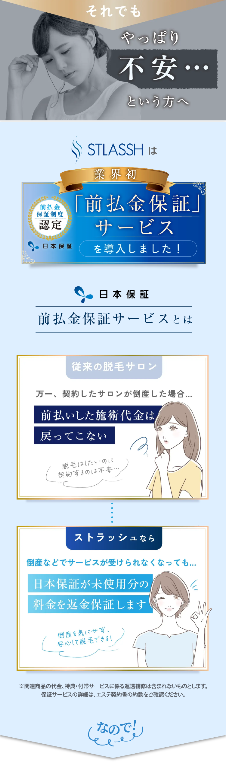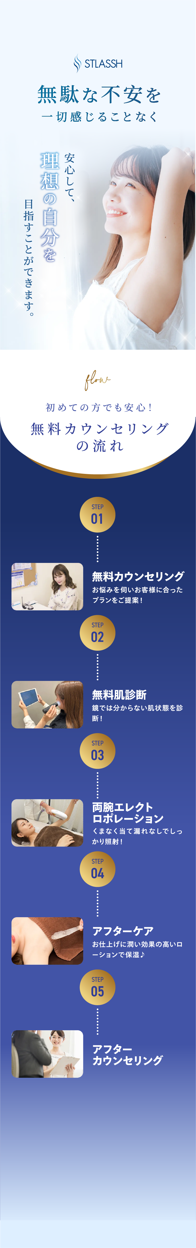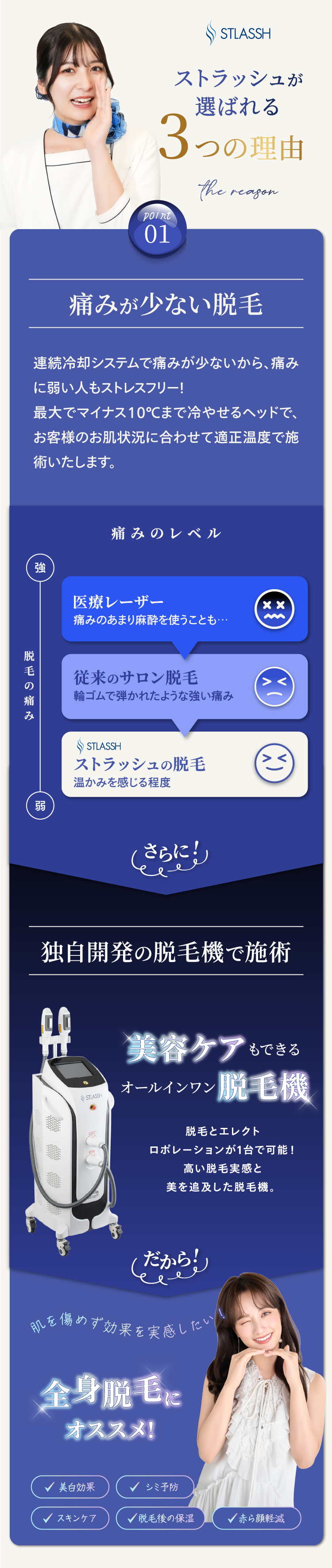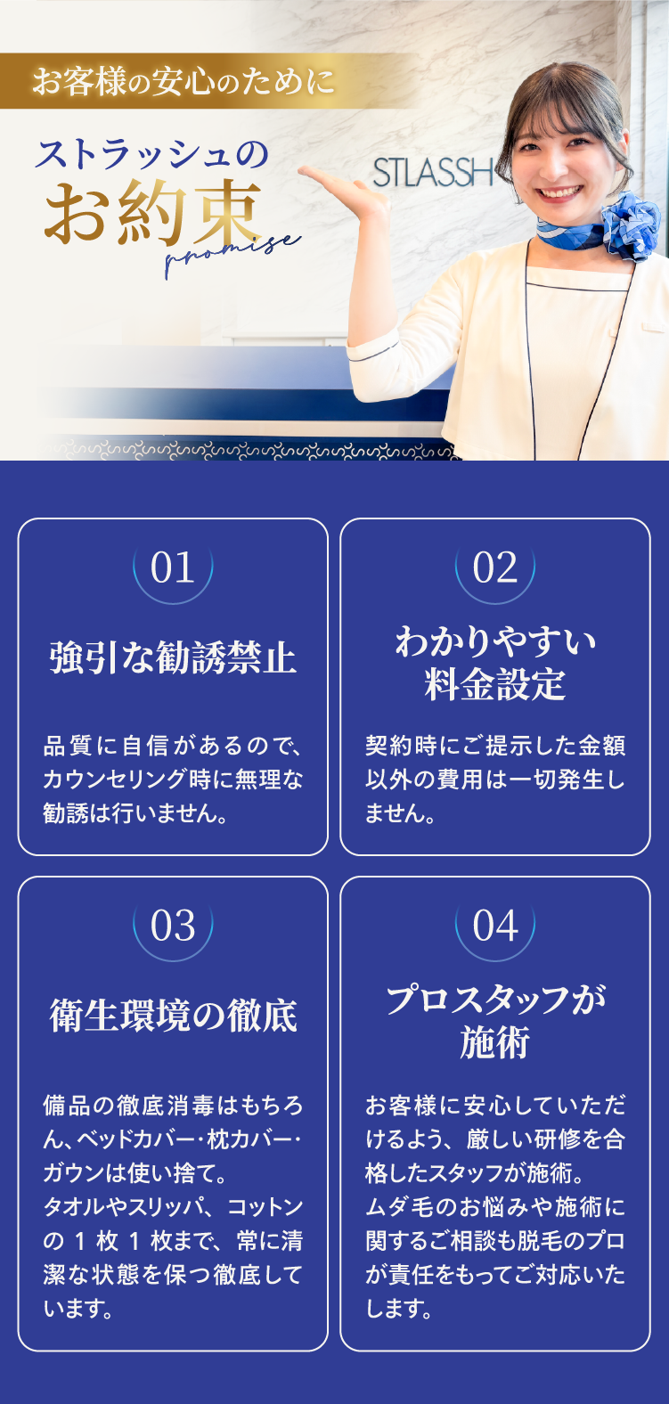 はじめての脱毛であれば、痛みや肌への負担を考えると美容脱毛をおすすめします。不安だらけかと思いますが、一度ストラッシュの無料カウンセリングへお越し下さいませ。お客様の不安が解消されるまでしっかりご説明させていただきます。